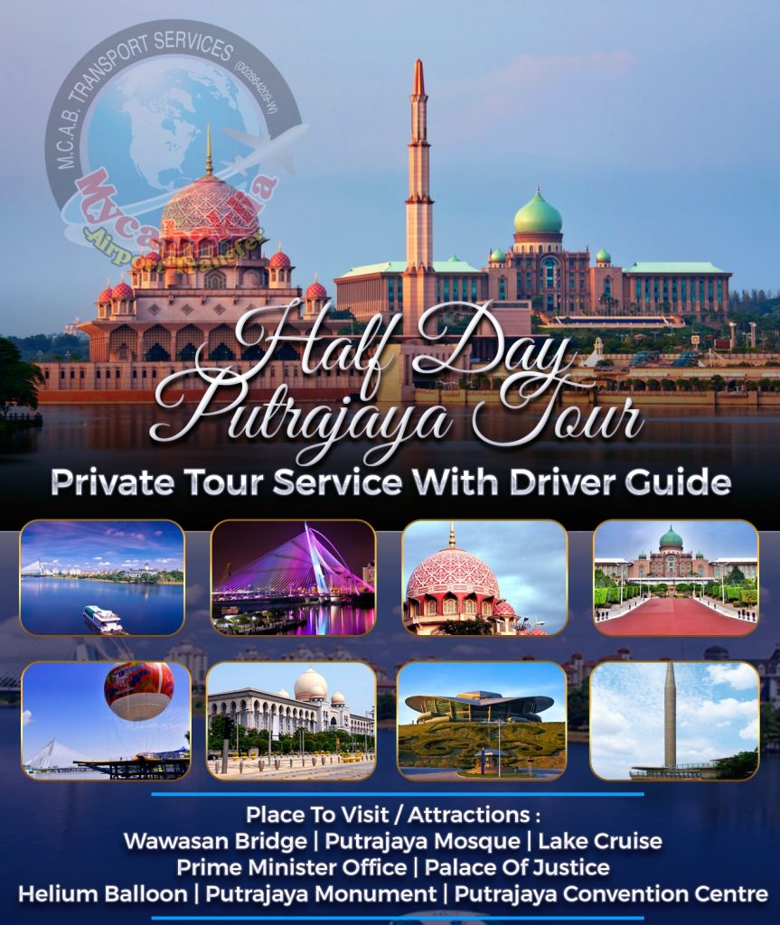 Discover the beauty and modern architecture of Malaysia’s administrative capital with our Half Day Putrajaya Tour! Book with MyCab2KLIA and let us take you on a journey through this picturesque city, known for its stunning landmarks, lush greenery, and serene lakes. Visit iconic spots like the Putra Mosque, Putrajaya Lake, and the impressive government buildings, all while enjoying a relaxed, guided tour. Whether you’re into photography, architecture, or just looking for a peaceful escape from the city, this half-day tour is perfect for you. Book your tour today and experience the charm of Putrajaya!